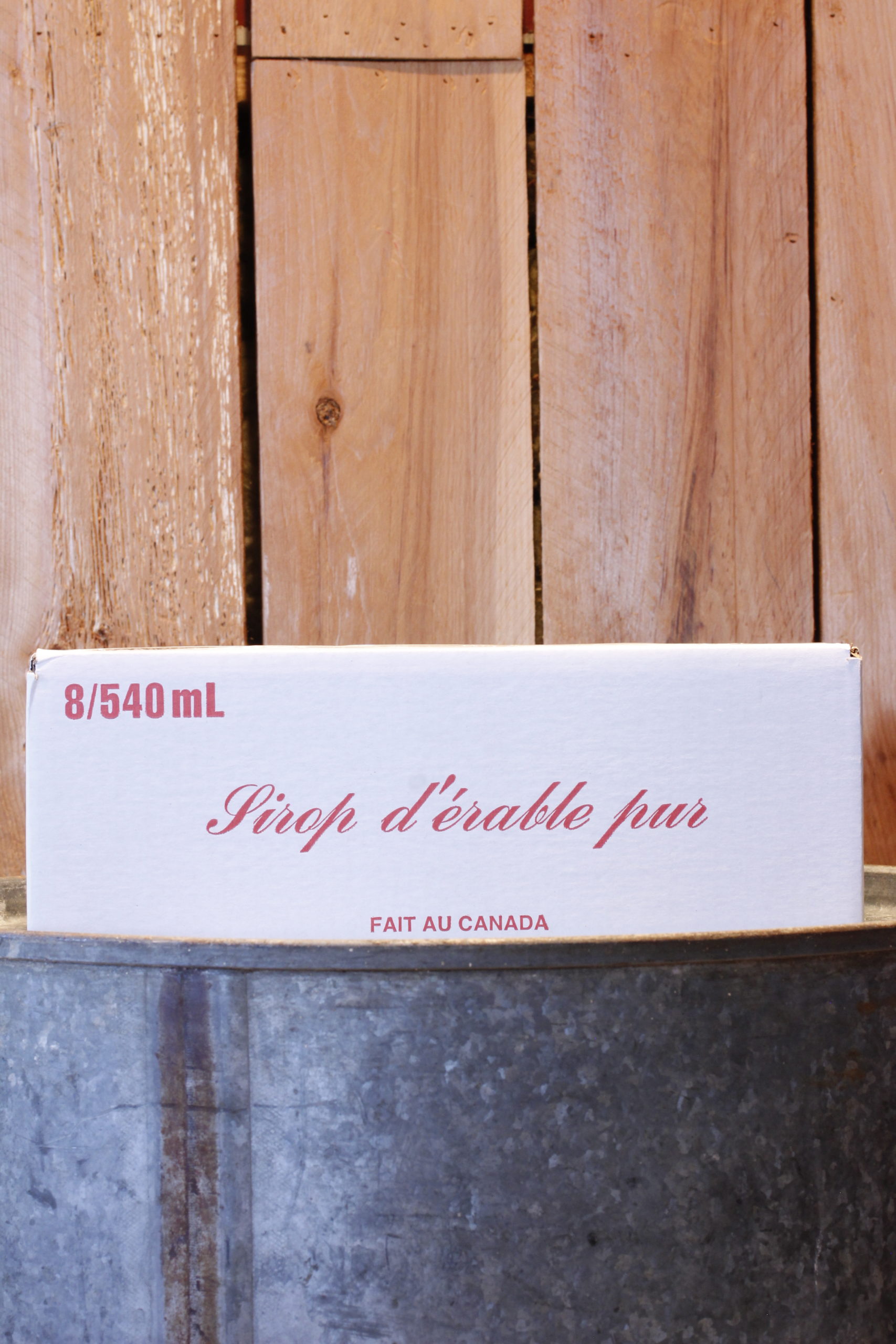 Canne de 540 ml de notre sirop d’érable pur bouilli sur feu de bois.